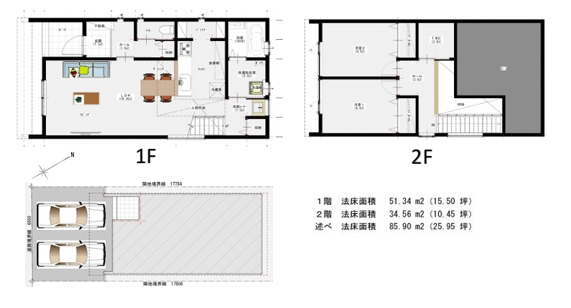 上記間取り図面は富岡町3丁目当社所有地にてプランニングしたものです。